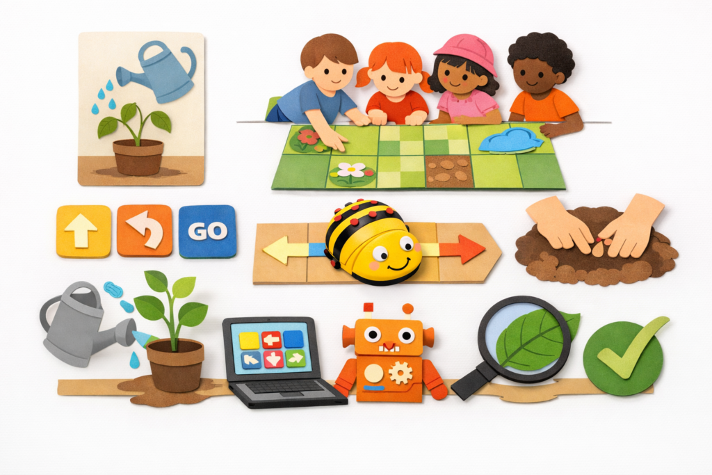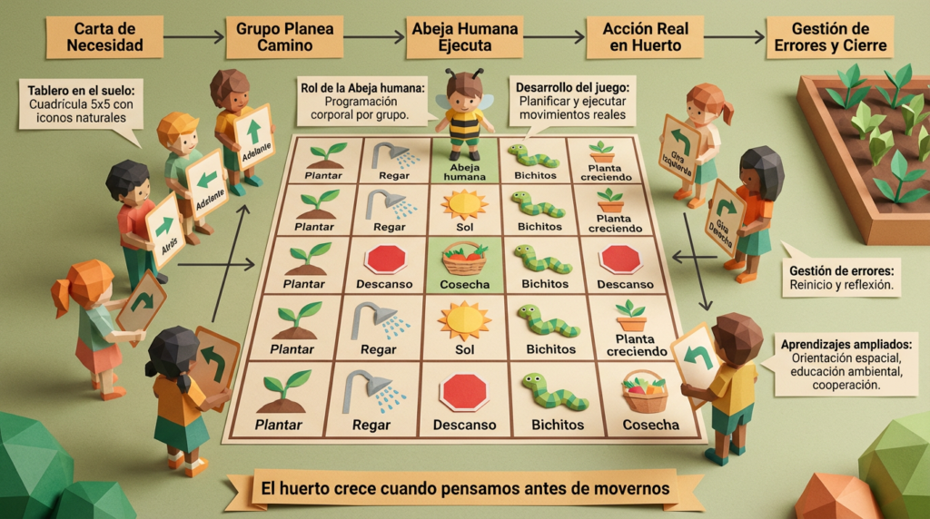 El huerto programable es una propuesta didáctica que integra pensamiento computacional, educación ambiental y trabajo cooperativo a través del uso del robot Bee-Bot. El alumnado aprende a programar movimientos sencillos mientras reflexiona sobre el cuidado del entorno y la toma de decisiones responsables.